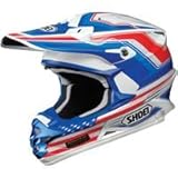 Shoei VFX-W Helmet - Salute (LARGE) (BLUE). This process combines fiberglass with organic fibers that are so strong that they can only be cut with a laser. The end result is a stronger, lighter shell that will absorb and distribute the force of an impact safely and efficiently. Dual-Layer EPS Liner Dual layer liner yields enhanced impact absorption by adjusting thickness and density in key areas. Inner liner features air channels for efficient cooling. Impact-absorbing EPS liner throughout the entire chin bar. V-430 "Sleek" Visor Developed by Shoei's sponsored riders. Lengthened for additional protection from sun and roost. Adjustment slot lengthened for greater versatility. Plastic hardware is utilized for easier visor breakaway during impact. Includes a matte black strip to reduce glare. 3D Max-Dry Liner System Polyurethane foam pads are three dimensionally formed for a perfect fit. Proprietary synthetic fiber absorbs and exhausts sweat 2X faster than conventional nylon. Liner is removable, adjustable, and washable. Emergency Quick Release System (EQRS) Mechanical tabs disengage cheek pads for easy removal by emergency medical personnel. Helmet can be removed with minimum load to rider in emergency situations. Ventilation System Improved air intakes are located in mouthpiece, forehead, and through scoops directing air into EPS liner. Seven exhaust ports dispel hot air from the rear of the helmet. Vent openings are covered by wire mesh to prevent dirt from entering liner. "Sleek" Mouthpiece Wire mesh screen helps prevent roost from entering the mouthpiece. A strip of AIM+ shell material reinforces mesh screen and helps to reduce chances of larger intrusions. Sleek mouthpiece directs cooling air through a removable and washable foam filter. 5-Year Warranty 5-Year Warranty From Purchase Date. 7-Year Warranty From Helmet Manufacture Date. Whichever comes first.