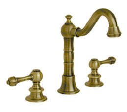 #Entertainment/prep widespread faucet with traditional swivel spout with lever handles solid brass side spray spout extension is required for counter tops thicker than 1 1/2" Spout length: 6" Height: 6 1/4"