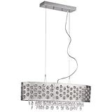| ✚✚✚ Inset Pentagons 28" Wide 6-Light Crystal Pendant Light Add interest and sparkling style to your living space with this polished chrome pendant light. The design features a shade with a beautiful composition of cut-out pentagon shades inset with clear crystal. Crystal dropless fall elegantly below the shade for even more splendor. From the Inset Pentagons collection. From the Inset Pentagons collection. Chrome finish. Clear crystal. Includes six 40 watt halogen bulbs. 28" wide. 14" high. Adjustable hanging height to 130".