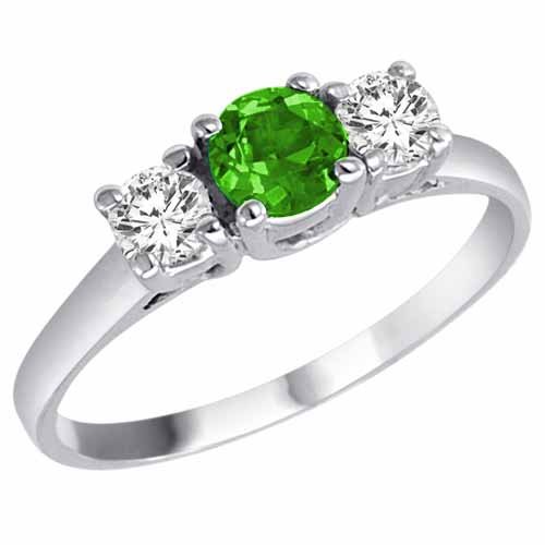 Platinum Round 3 Stone Peridot & Diamond Ring (1 ctw) Size 7 1/2