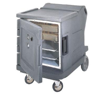 Cambro CMBH1826LTR194 Camtherm Hot Cart, Electric, Single Door, Security, Granite Sand, NSF, Each Low profile electrical plastic insulated holding cabinet is excellent for nursing homes, schools, correctional facilities, military operations, hospitals, caterers, hotels, business & industries, and restaurants. Features top marine rail that holds 2 full size food pans, one sheet pan or one cutting board; solar powered digital display thermometer monitors internal cabinet temperature; self venting cap on each cabinet door automatically releases steam and equalizes pressure, maintaining food quality; menu clips on each door hold routing directions or list of cabinet contents; heavy duty, 14 gauge electrical cord is 9' long; ergonomic molded in handles are at a safe height for easy transporting, even when fully loaded; wide, nylon door latches and magnetic door gaskets lock doors securely and create a tight seal to retain safe hot or cold food temp.; knuckle door hinges are built to withstand the rigors of numerous door openings and lift up off the hinges for easy cleaning; aluminum louvers gently and evenly direct hot or cold air aroung the entire cabinet and contents, eliminating hot or cold spots; anodized aluminum uprights and removable chrome plated steel slide rails hold full size food pans or sheet pans; slide rails can be easily removed and adjusted; tough one peice seamless double wall polyethylene exterior is easy to clean and won't dent, crack, rust, chip or break; foam insulation maintains safe food temp. for hours when cabinet is unplugged. Volts: 110 Maximum amps draw: 9.1 Amps run on: 8.5 Watts: 1100 (fahrenheit) | Cambro CMBH1826LTR194 Camtherm Hot Cart, Electric, Single Door, Security, Granite Sand, NSF, Each