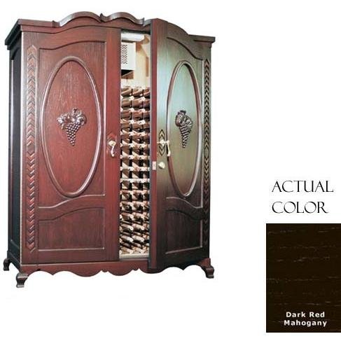 #Vinotemp VINO-700LOUISNA-DRM Louis-Napa 400 Bottle Wine Cellar With Carved Grape Motif - Dark Red Mahogany. VINO-700LOUISNA-DRM. Wine Cellars. The truly spectacular Louis Napa 700-style wood Wine Cellar can artfully store up to 400 bottles. This unique storage cabinet has beautifully-carved grape motifs on each of two doors, and a special cornice and base. The Redwood and aluminum interior racking consists of universal 3 3/4-inch cubicles. Interior insulation and a magnetic gasket along the inside edge of the door will maintain the integrity of your storage environment. This cabinet is also equipped with a state-of-the-art Wine-Mate cooling system, which is engineered for efficient, quiet operation using environmentally friendly R-134 refrigerant. This wine cellar comes complete with lockset, lighting and factory finishing. The beautiful white oak exterior can be completed with your choice of finish, available in a wide offering of wood tones. Each factory finish is applied using a thorough 6 step process with three coats of stain and three coats of semi-gloss finish. (Capacity varies with size and shape of bottle. ) Dimensions: (60 W x 29 inchD x 82 H).
