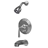 Newport Brass 3-1742BP/24S Satin Gold Bevelle Bevelle Single Handle Tub and Shower Trim with Single Function Showerhead and Metal Lever Handle 3-1742BPBevelle Single Handle Tub and Shower Trim with Single Function Showerhead and Metal Lever HandleNewport Brass Bevelle Collection s Victorian styling brings a refined touch to any bathroom. Elegant and beautifully crafted, the Bevelle Collection is at home anywhere it is installed. Newport Brass lavatory faucets are available in several different styles with 25 unique finish options. You will see why Newport Brass boasts Flawless Beauty from Faucet to FinishFeatures:Single handle tub and shower trimSolid brassADA compliant lever handleFace Plate with ADA compliant diverter pull-knobIntended for use with Newport Brass rough valve item 1-595Finish Features:Available in 25 beautiful finishesNew Industry Leading lacquer Finish ProcessIAPMO Certified and testedLong Life Finishes - 10 Year WarrantyDurable, color protected, scratch resistantGreen, low VOC, energy efficient finishing processSpecifications:Material : Solid BrassHandle type : Metal lever handleHandle Included : YesEscutcheon diameter : 7-3/4"Extends from wall : 9-7/16"Shower arm flange diameter : 2-1/2"Tub spout length : 7-7/16"