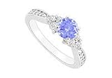 Tanzanite and Diamond Engagement Ring : 14K White Gold - 0.50 CT TGW Size 6.5
