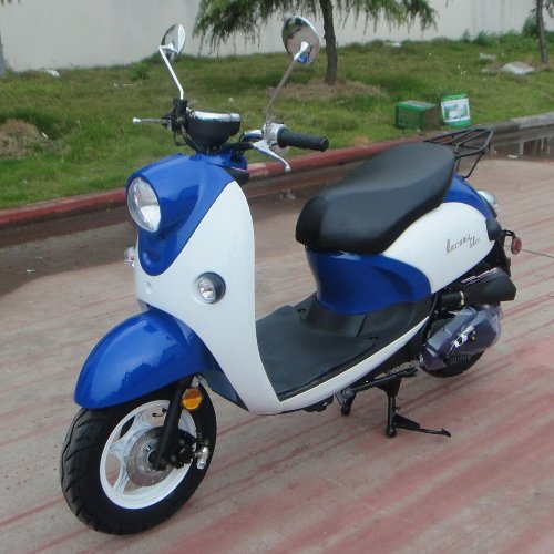 Verona TPGS-827 BLUE 49cc Gas 4 Stroke Moped Scooter w/ Rear Luggage Rack?Verona TPGS-827 49cc Gas 4 Stroke Moped Scooter w/ Rear Luggage Rack! Just think cruising down the road on a VERONA 50 hugging each and every turn for up to 100 miles a gallon! Now who wouldn't be excited about that! This purchase should give you the peace of mind knowing that you have saved yourself thousands of dollars years from now Our Street Legal 49cc scooters are definitely the most cost effective way to travel for anyone who is 16 years of age or older. They are perfect for students commuting to school or for an employee traveling to his job. Just like other gas scooters we have for sale, they are very simple to operate and maneuver extremely well in traffic. They also fit into places you could never even dream of putting a car, so that means you have many more opportunities to park it.